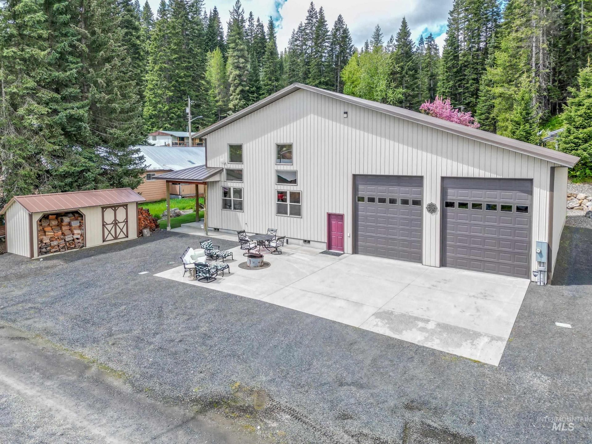 Welcome to a truly unique property that blends historic charm with modern convenience in the quiet mountain town of Pierce. This custom-built shop-house offers the perfect blend of function and comfort, with space, style, and standout features you wont find anywhere else. Step into the main-level primary suite, where youll enjoy the ease of single-level living complete with a private en-suite bathroom. All designed for practical luxury. The kitchen is a showstopper, anchored by a stunning custom-installed black walnut pantry imported from an 1800s home in Philadelphia?an incredible piece of history that sets this home apart. An antique Cherry facade fitted in the master bedroom is breathtaking. The heart of the living area boasts soaring 19-foot vaulted ceilings that flood the space with natural light, creating a warm, open atmosphere perfect for both quiet mornings and entertaining. Garage doors are 14 tall by 10 wide, RV hookups (2) 30 amp outlets. Generator is Generac porpane/electric. Additional lots across the street may be purchased as well.